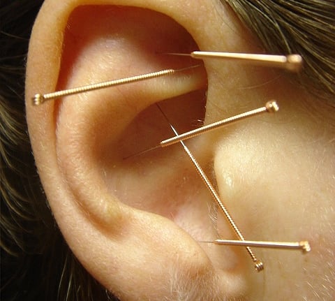 German auricular acupuncture involves stimulation of specific points on the ear that correspond to areas of the body based on the German auricular microsystem for relieving pain according to the Bahr system.